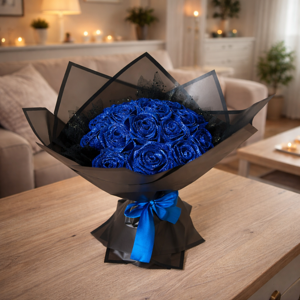 Kytice tmavě modrých třpytivých růží 17ksNení skladem1 299 Kč/ ks