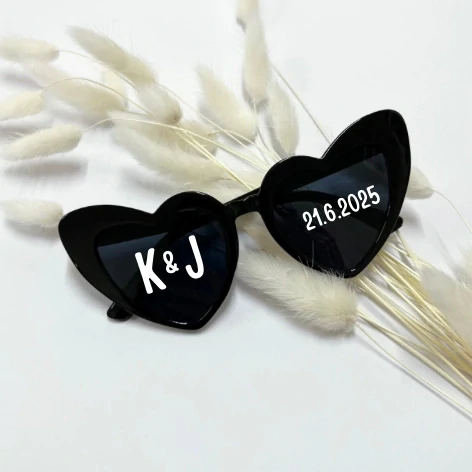 Plastové sluneční brýle ve tvaru srdce s iniciály a datem Vaší svatby.
