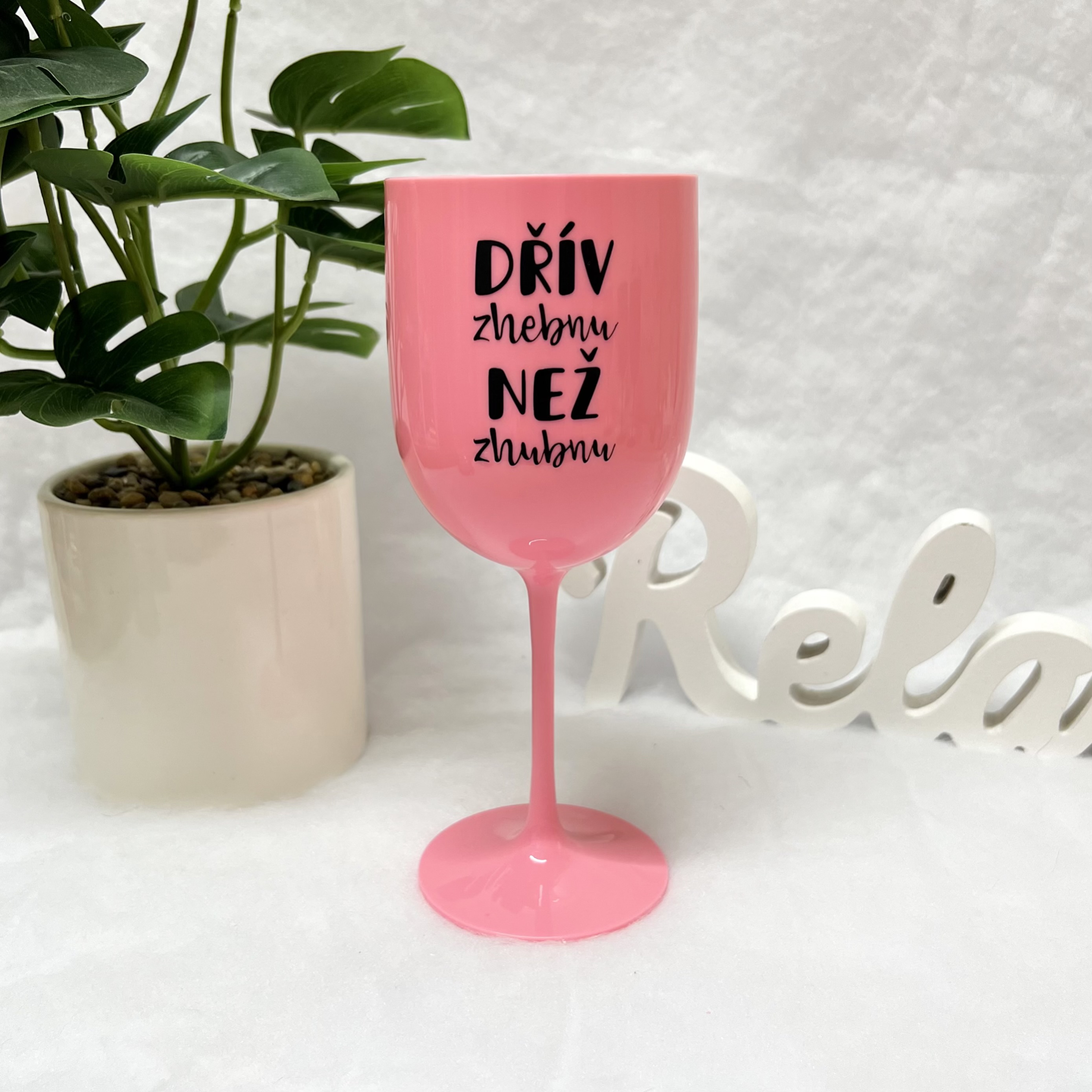 Plastová sklenička “Dřív zhebnu než zhubnu” růžováSkladem219 Kč/ ks