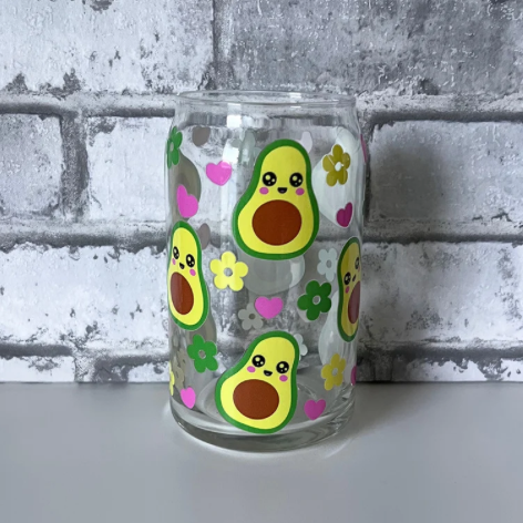 Sklenička ve tvaru plechovky s vinylovým polepem.
