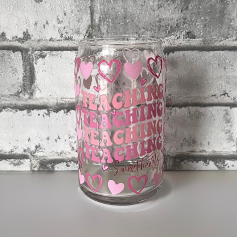 Sklenička ve tvaru plechovky s vinylovým polepem.