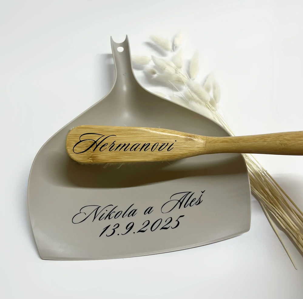Chystáte svatbu? Pořiďte si na ní tento originální personalizovaný svatební smetáček s lopatkou.