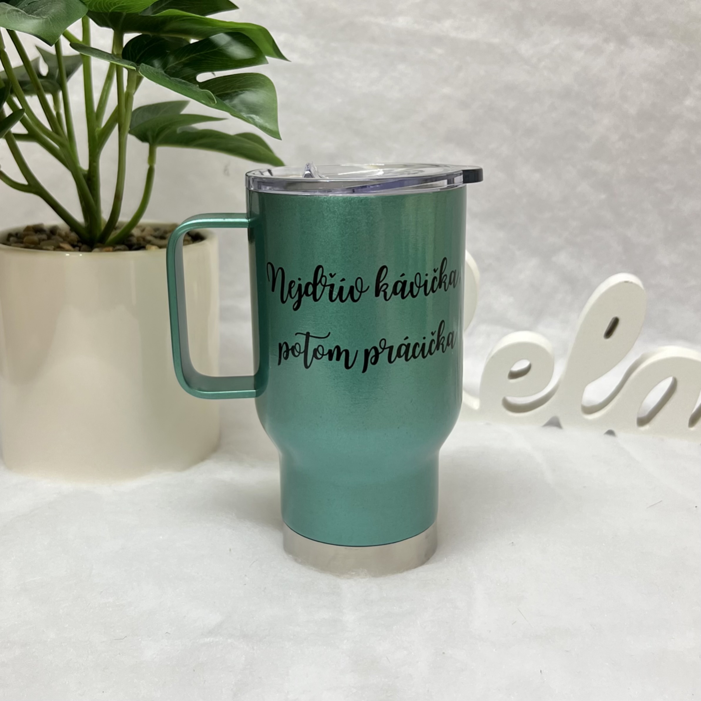 - Termohrnek tyrkysový Nejdřív kávička, potom prácička 450ml